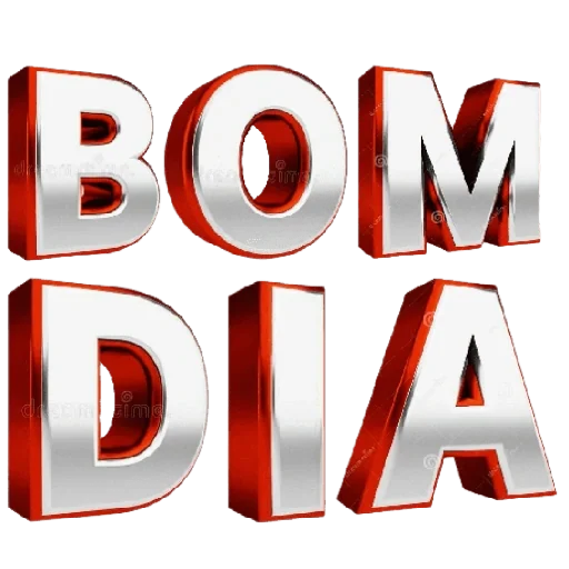 Um sticker com as palavras 'BOM DIA' em letras grandes e prateadas com contorno vermelho.