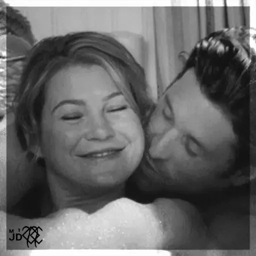 Um casal se beijando, a mulher sorrindo com os olhos fechados e o homem com o rosto próximo ao dela.