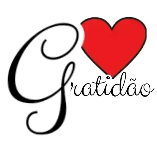 Letra G maiúscula em cursivo preto ao lado de um coração vermelho e a palavra gratidão em cursivo preto.
