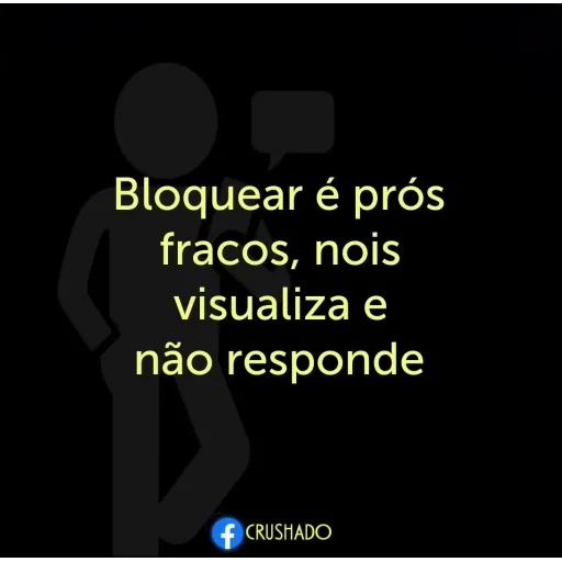 Uma silhueta de uma pessoa ao lado de uma bolha de fala em um fundo preto, com o texto 'Bloquear é pros fracos, nois visualiza e não responde' em amarelo.