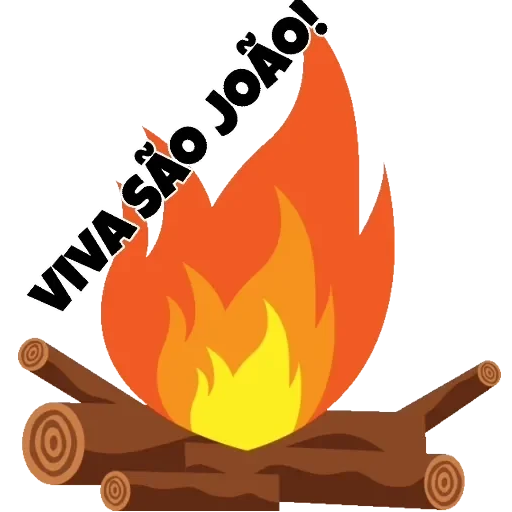 Fogueira com chamas laranjas e amarelas, com troncos de madeira. O texto 'VIVA SÃO JOÃO!' aparece em diagonal.