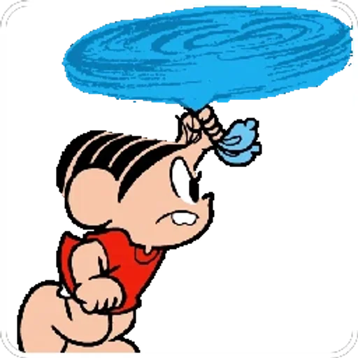 Menino de fralda e camiseta vermelha segurando uma grande gota de água azul acima da cabeça.