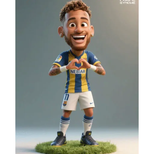 Um jogador de futebol com camisa azul e amarela fazendo um gesto de amor com as mãos.