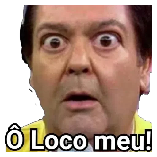 Homem com expressão de surpresa e olhos arregalados, usando uma camisa amarela. O texto 'Ô Loco meu!' aparece abaixo.
