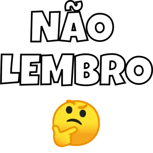Um emoji pensativo com a mão no queixo e o texto "NÃO LEMBRO" em letras grandes.