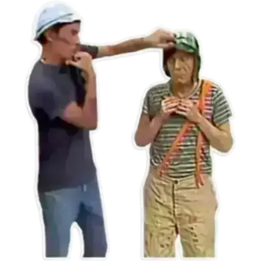Um homem ajusta o capacete de outro homem, ambos vestidos com roupas casuais e equipamentos de segurança, em um gesto de cuidado ou inspeção.