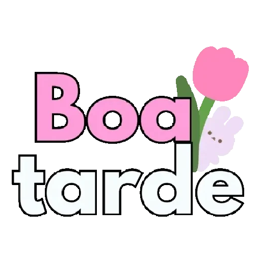 Um desenho com a frase 'Boa tarde' em letras grandes, com uma tulipa rosa e um coelho ao lado.