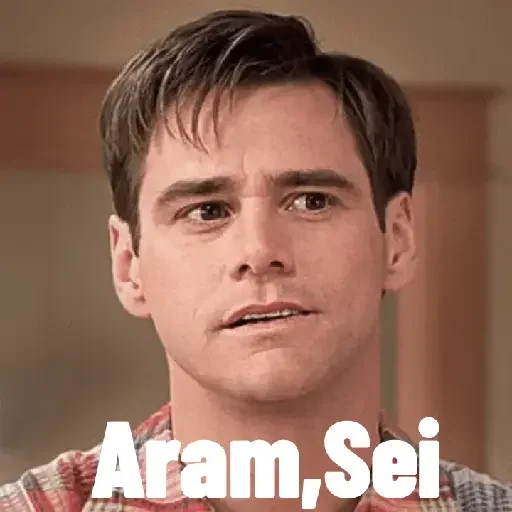Um jovem com cabelo castanho e expressão séria, com o texto 'Aram, Sei' sobreposto.