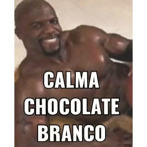 Homem musculoso com expressão de raiva, texto "CALMA CHOCOLATE BRANCO" sobreposto.