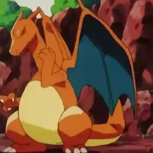 Um desenho do Charmander, um dos iniciais do Pokémon, com expressão facial séria e olhos arregalados.