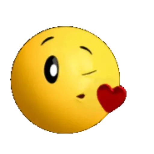 Um emoji amarelo com um coração vermelho saindo da boca, olhos grandes e sobrancelhas finas, parecendo tímido.