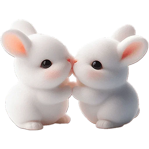 Dois coelhos brancos fofos se beijando, com orelhas rosadas e olhos pretos.