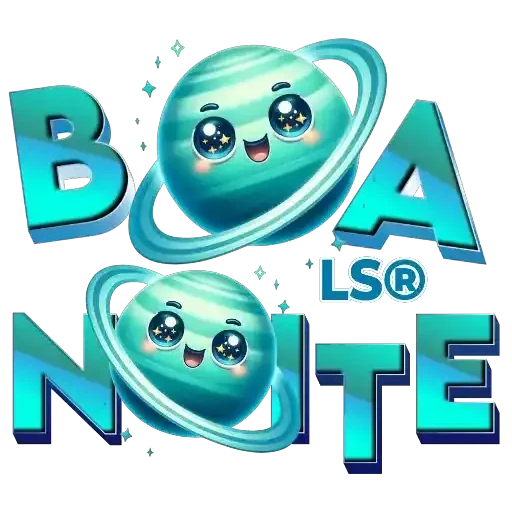Dois planetas azuis sorridentes com expressão de felicidade e as palavras 'BOA NOITE' em letras grandes e coloridas.