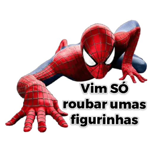 Homem-Aranha em pose de ataque, com texto 'Vim só roubar umas figurinhas'.