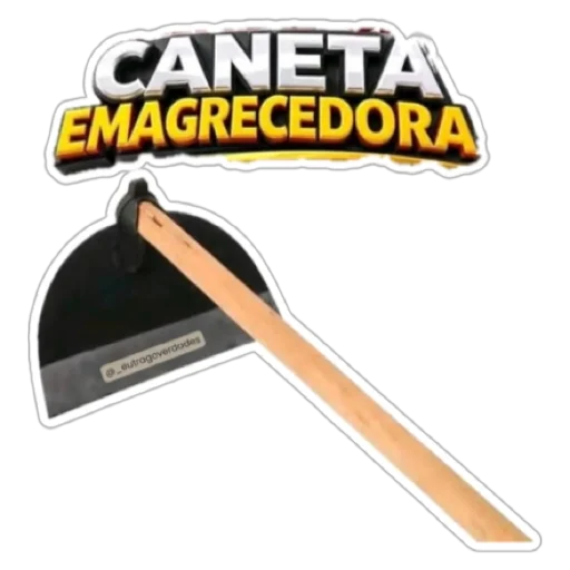 Uma caneta com a inscrição 'Caneta Emagrecedora', sugerindo uma caneta que ajuda a emagrecer.