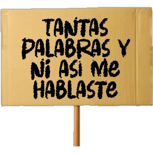 Um cartaz amarelo com texto preto que diz 'TANTAS PALABRAS Y NI ASI ME HABLASTE'.