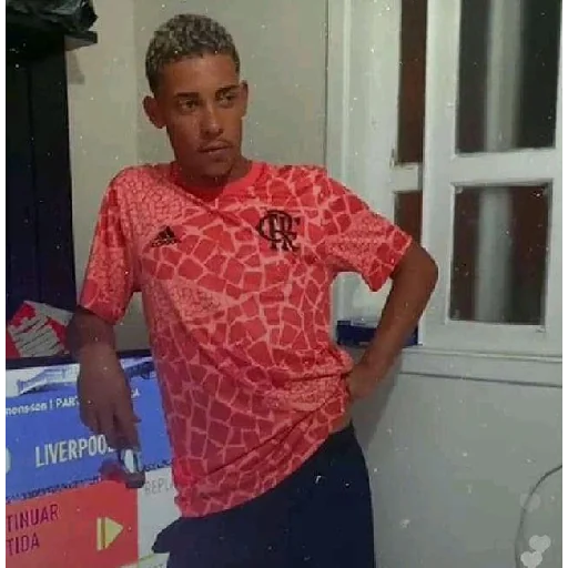 Jogador de futebol com camisa do Flamengo, marca BRL e HAVAN, com expressão de comemoração.