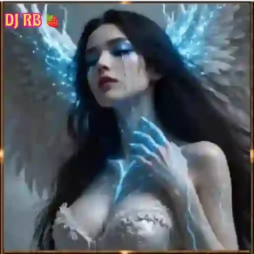 Uma mulher com asas azuis e cabelos pretos longos, com uma expressão misteriosa e mãos no peito. Ela tem olhos azuis brilhantes e uma aura etérea.