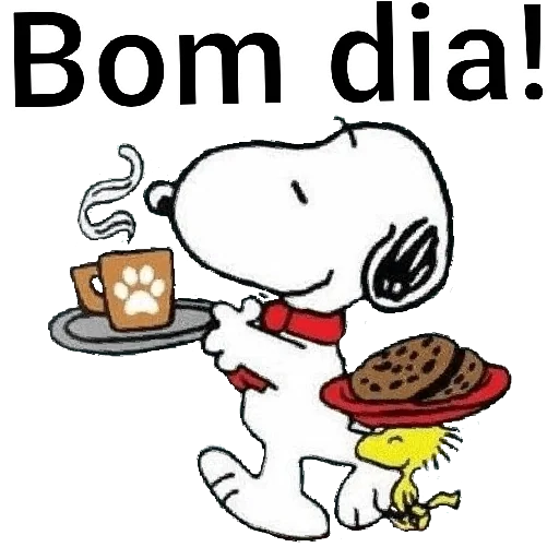Charlie Brown e Snoopy, com a frase 'BOM DIA!' em letras grandes e amarelas.