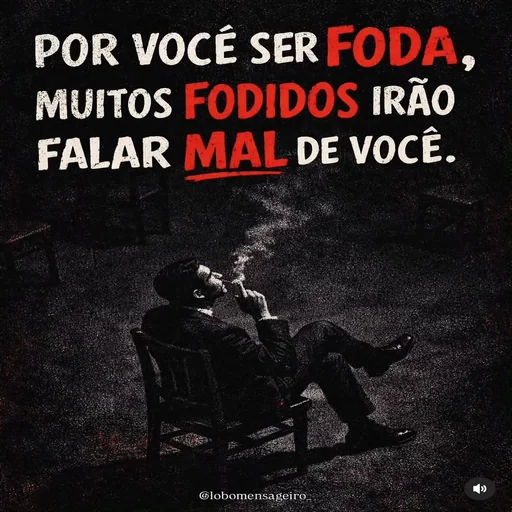 Um homem sentado em uma cadeira, fumando, com uma expressão relaxada. O texto acima dele diz 'POR VOCÊ SER FODA, MUITOS FODIDOS IRÃO FALAR MAL DE VOCÊ.'
