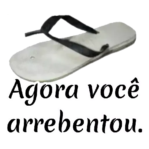 Uma sandália havaiana branca com tira preta e o texto "Agora você arrebentou".