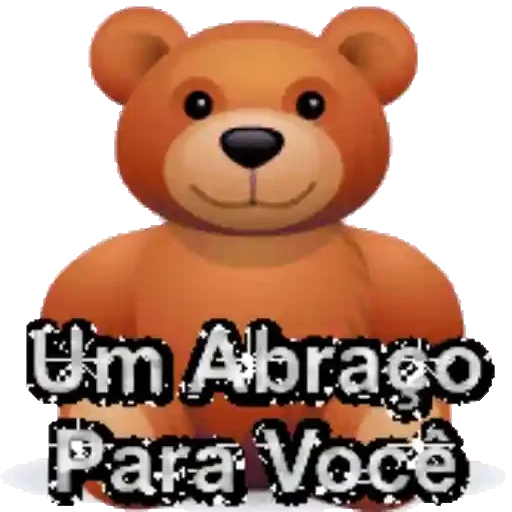 Um urso de pelúcia marrom com um sorriso e texto 'Um Abraço Para Você' em letras brancas com contorno preto.
