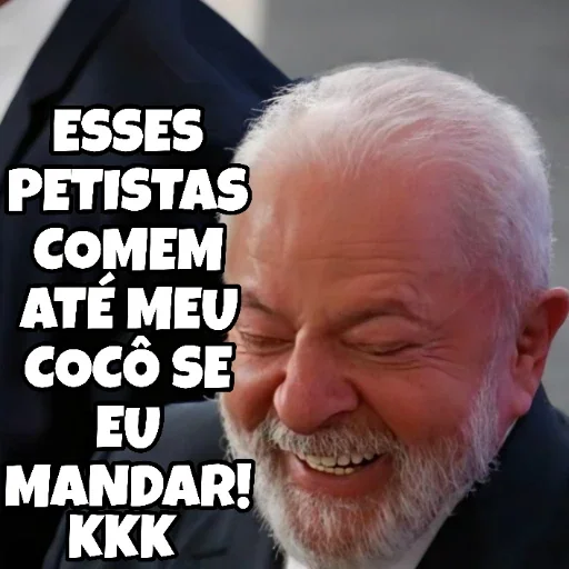 Imagem de um homem idoso com texto em português que diz 'ESSSES PETISTAS COMEM ATÉ MEU COCÔ SE EU MANDAR! KKK'.
