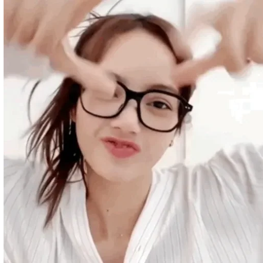 Uma mulher com óculos pretos fazendo um gesto de coração com as mãos em frente ao rosto.