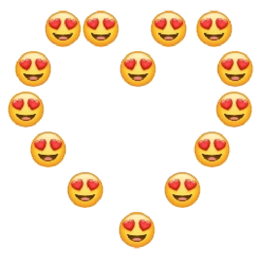 Um coração formado por emojis de rostos sorridentes com olhos de coração.