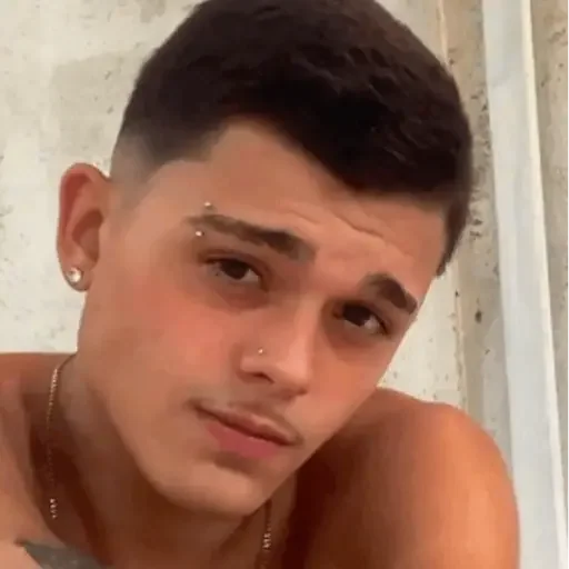 Homem jovem com cabelo curto e expressão facial de desconfiança ou surpresa, usando uma corrente e um brinco.
