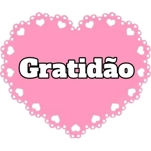 Um coração rosa com a palavra 'Gratidão' no centro, rodeado de pequenos corações brancos.