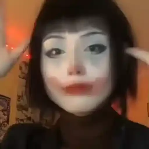 Uma mulher com maquiagem pesada e cabelo preto fazendo careta, com as mãos ao lado da cabeça.