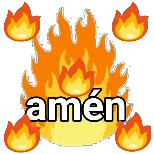 Chamas de fogo laranja e amareladas ao redor da palavra 'amén' em letras brancas com contorno preto.