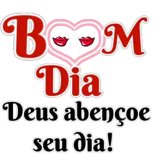 Um coração rosa com olhos e beijo na letra 'O' e as palavras 'BOM Dia Deus abençoe seu dia!' em vermelho e preto.