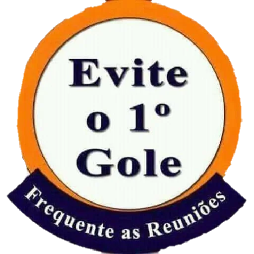 Um círculo laranja com um texto 'Evite o 1° Gol'e um banner abaixo com 'Frequente as Reuniões'.