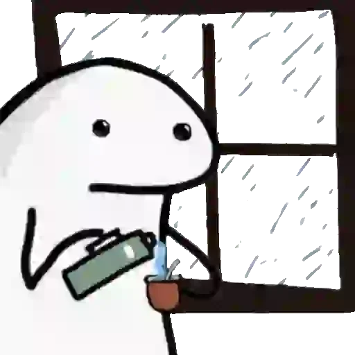 Um desenho simples de um personagem com corpo oval e olhos redondos, parecendo indiferente ou confuso.