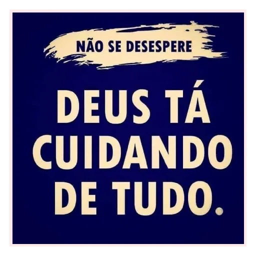 Uma figurinha com fundo azul escuro e texto em amarelo. O texto 'NÃO SE DESESPERE' está em uma faixa de pincelada amarela no topo, e 'DEUS TÁ CUIDANDO DE TUDO.' em letras grandes abaixo.