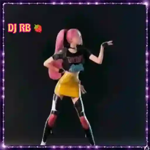 Uma mulher com cabelo rosa e um look ousado, com uma peruca longa e rosa, um shortinho amarelo e uma blusa preta. Ela está com os braços levantados e parece estar dançando. Há um texto 'DJ RB' no canto superior esquerdo.