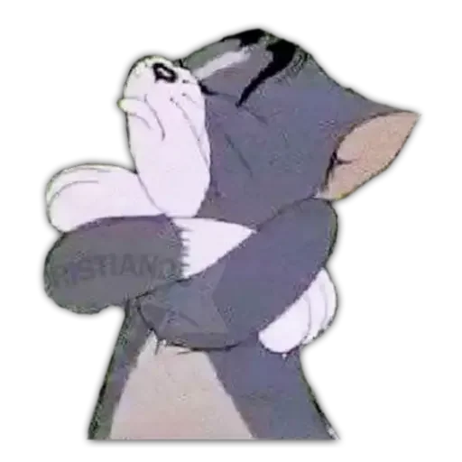 Tom, o gato cinza do desenho animado, com expressão de tristeza e abraçando a si mesmo.