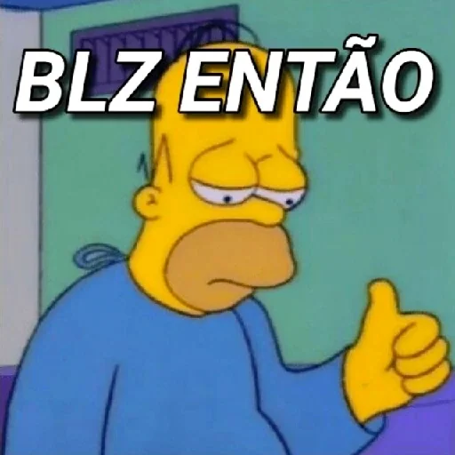 Homem de aparência amarela com expressão de desinteresse, vestindo uma camisa azul, fazendo um gesto de aprovação com a mão direita. Sobreposto com o texto 'BLZ ENTÃO'.