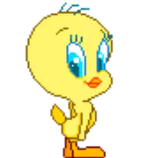 Tweety, o passarinho amarelo, com flores cor-de-rosa e explosão de luzes ao fundo.