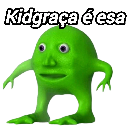 Um monstro verde com olhos grandes e texto 'Kidgraça é essa'