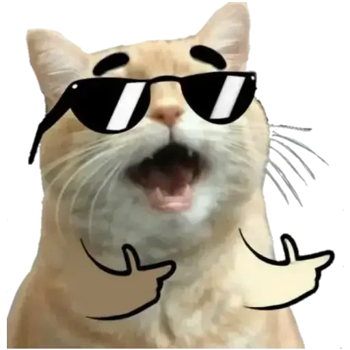 Gato com óculos de sol e expressão surpresa, fazendo um gesto com as mãos.