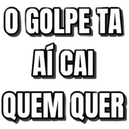 Um texto em branco com contorno preto que diz 'O GOLPE TA AÍ CAI QUEM QUER'.