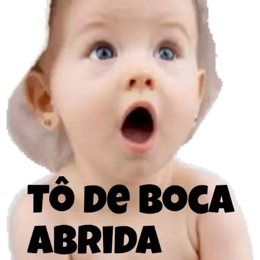 Um bebê com a boca aberta e expressão de surpresa, com o texto 'Tô de boca aberta' sobreposto.
