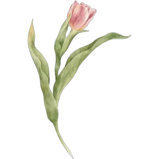 Uma flor rosa com folhas verdes, desenhada em estilo de ilustração suave.