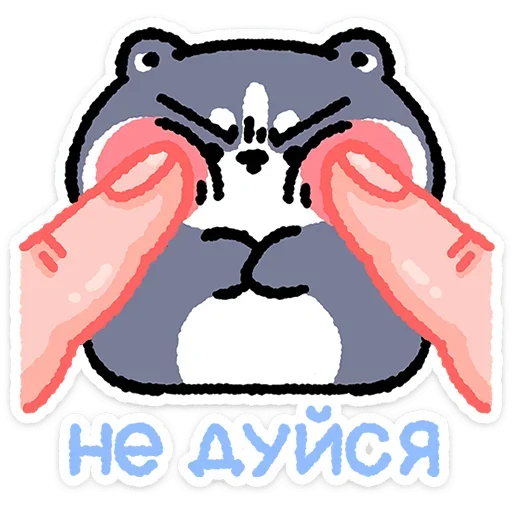 Um desenho de um ursinho cinza com as mãos sendo cutucado nos olhos, com texto em russo 'не дуйся' abaixo.