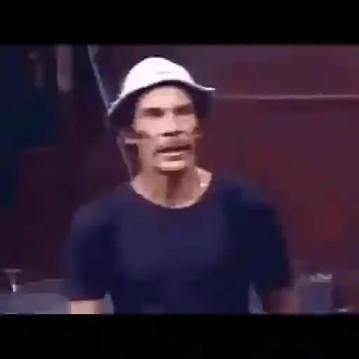 Homem com expressão surpresa, vestindo um boné branco e uma camiseta preta.