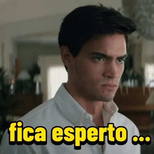 Um homem com cabelo preto e camisa branca olha para o lado, com uma expressão facial séria. A frase 'tu gostou né!'…