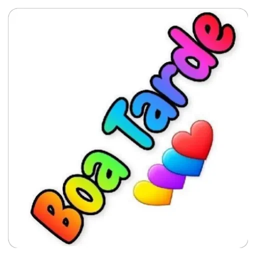 Um arco-íris de letras coloridas que formam a frase 'Boa Tarde' com corações coloridos ao lado.